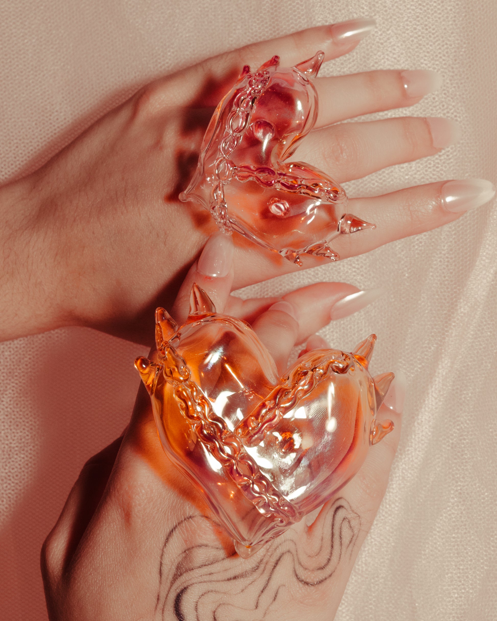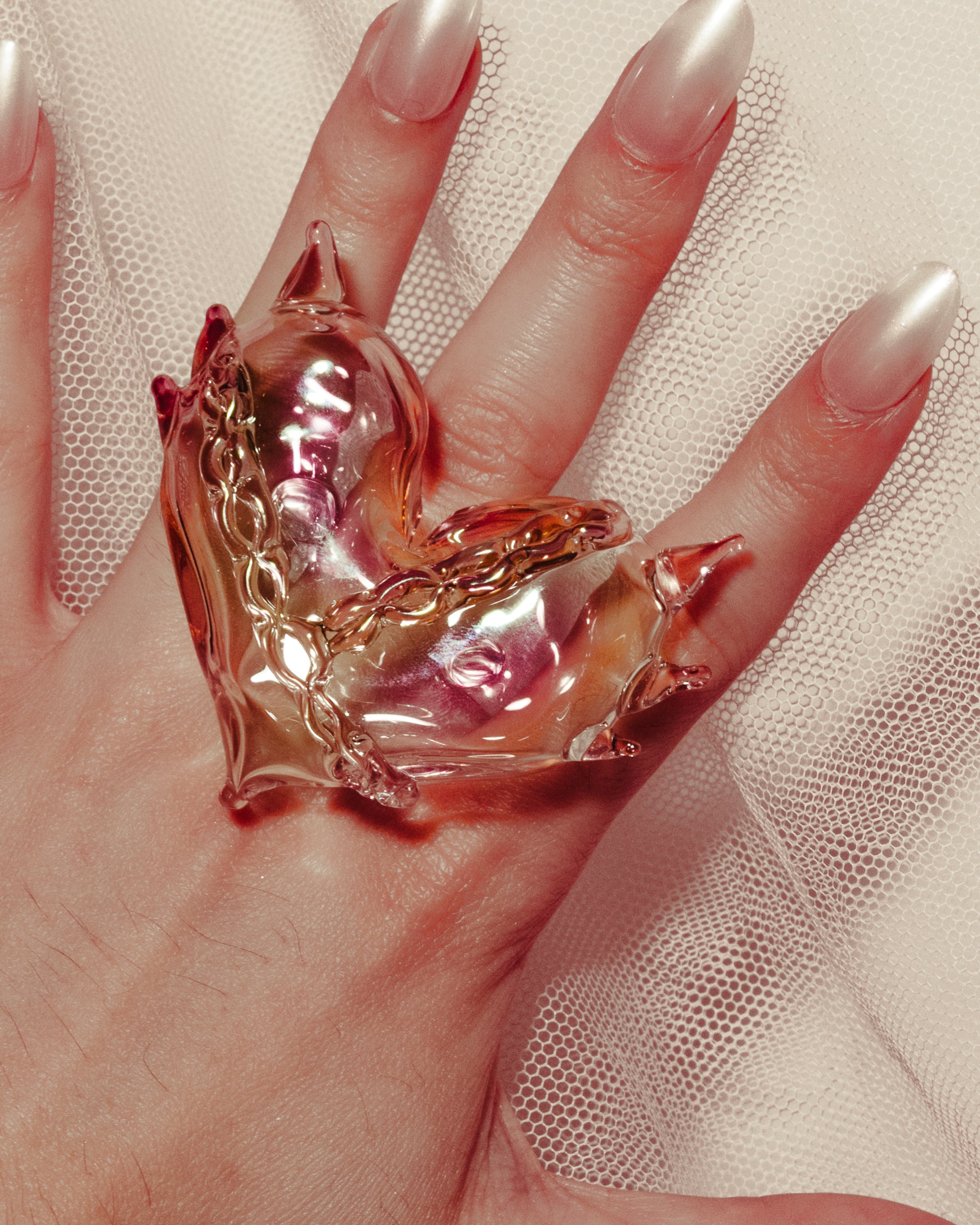 Hand blown and sculpted ring, fumed with gold.